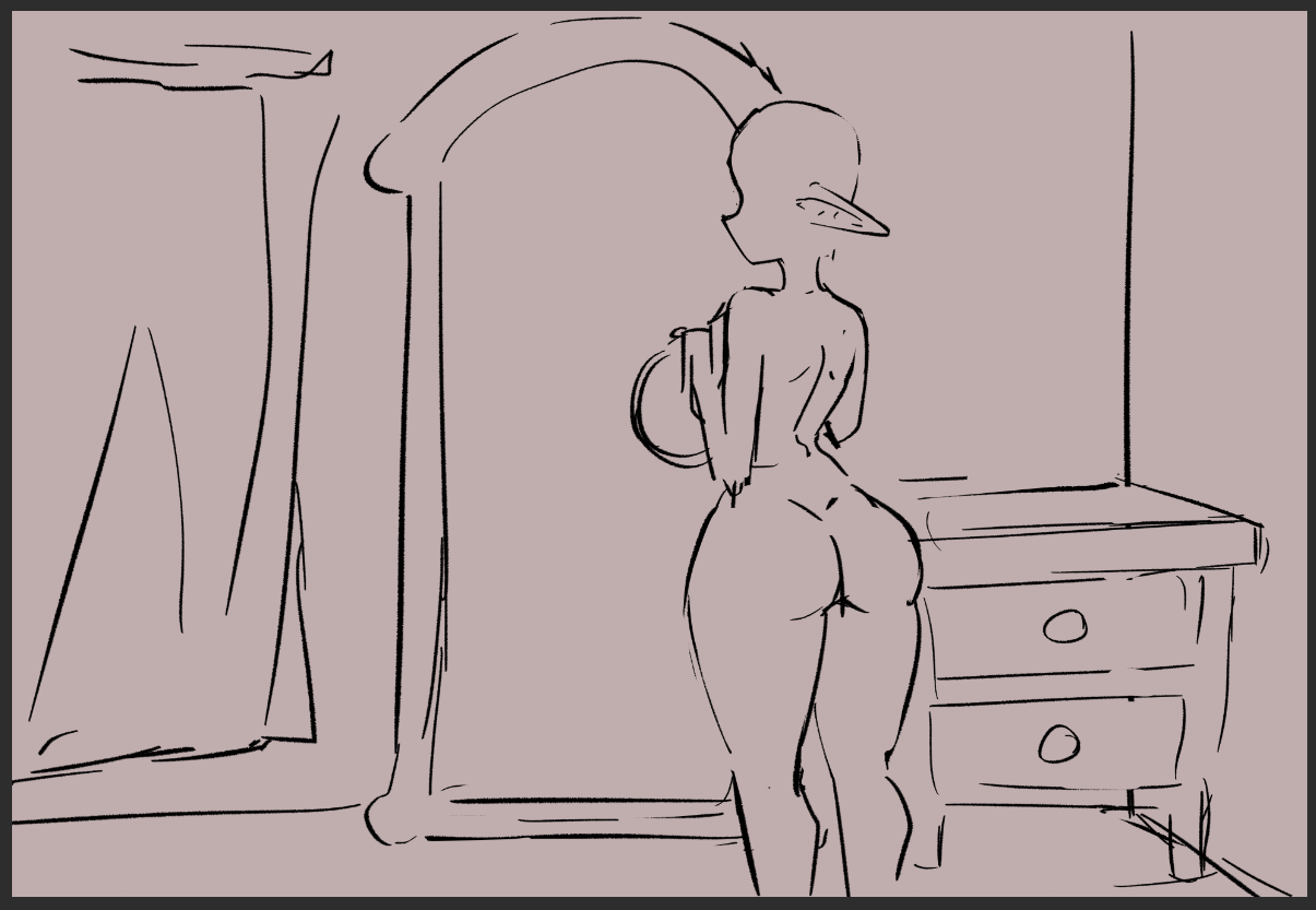 And Comelyfay is currently working on the final set of artworks for the mirror changing scene (fine, you get a sneak peek)